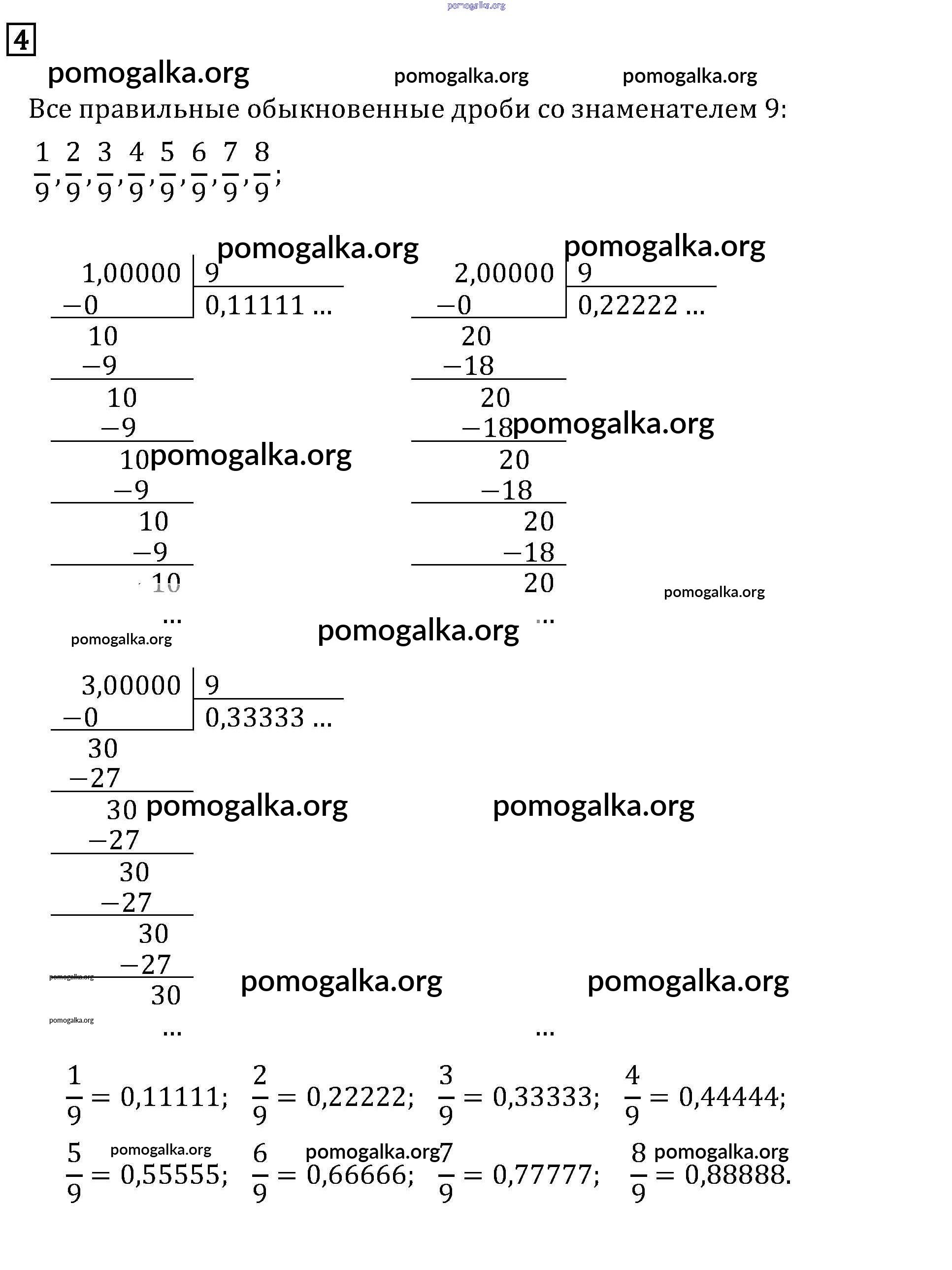 Готовые ответы - Математика 6 класс задачник Бунимович Е.А. - бесконечное деление дополнительный вопрос 4