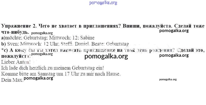 Готовые ответы - Немецкий язык 3 класс рабочая тетрадь Бим И.Л. - Сабина пишет приглашения на день рождения глава VI 2