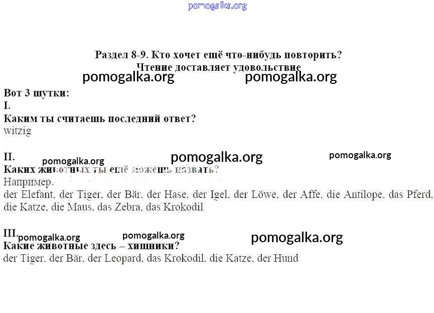 Готовые ответы - Немецкий язык 3 класс Бим И.Л. - раздел 8-9 глава 2 1