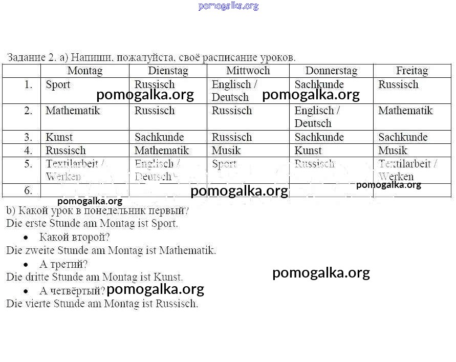 Готовые ответы - Немецкий язык 4 класс рабочая тетрадь Бим И.Л. - У Сабины и Свена ещё и новое расписание уроков А что нового в школе 2