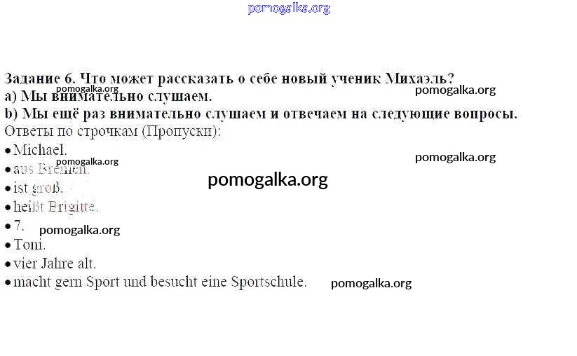 Готовые ответы - Немецкий язык 5 класс Бим И.Л. - раздел 1 Здравствуй, 5 класс 6