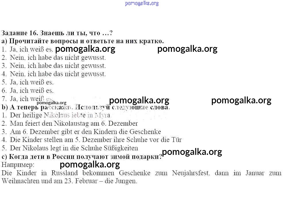 Готовые ответы - Немецкий язык 5 класс Яковлева Л.Н. - уроки 1-13 глава 4 16
