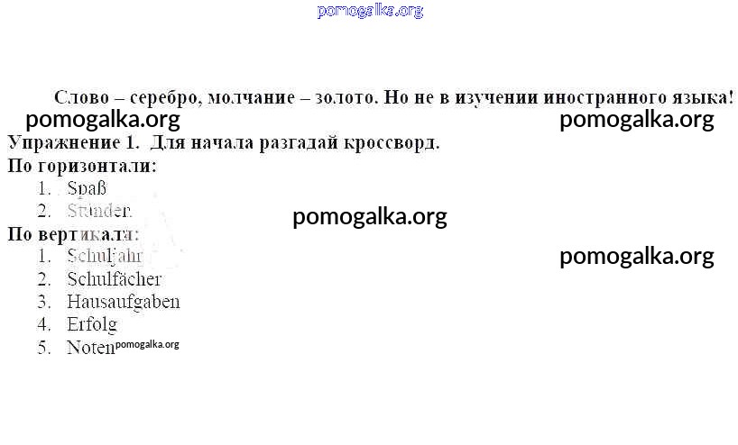 Готовые ответы - Немецкий язык 6 класс рабочая тетрадь Бим - слово-серебро, молчание-золото глава 1. Начало занятий в школе 1
