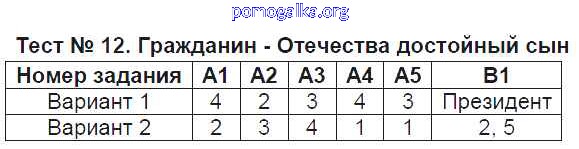Готовые ответы - Обществознание 6 класс контрольно-измерительные материалы (КИМ) Поздеева А.В. - тест 12