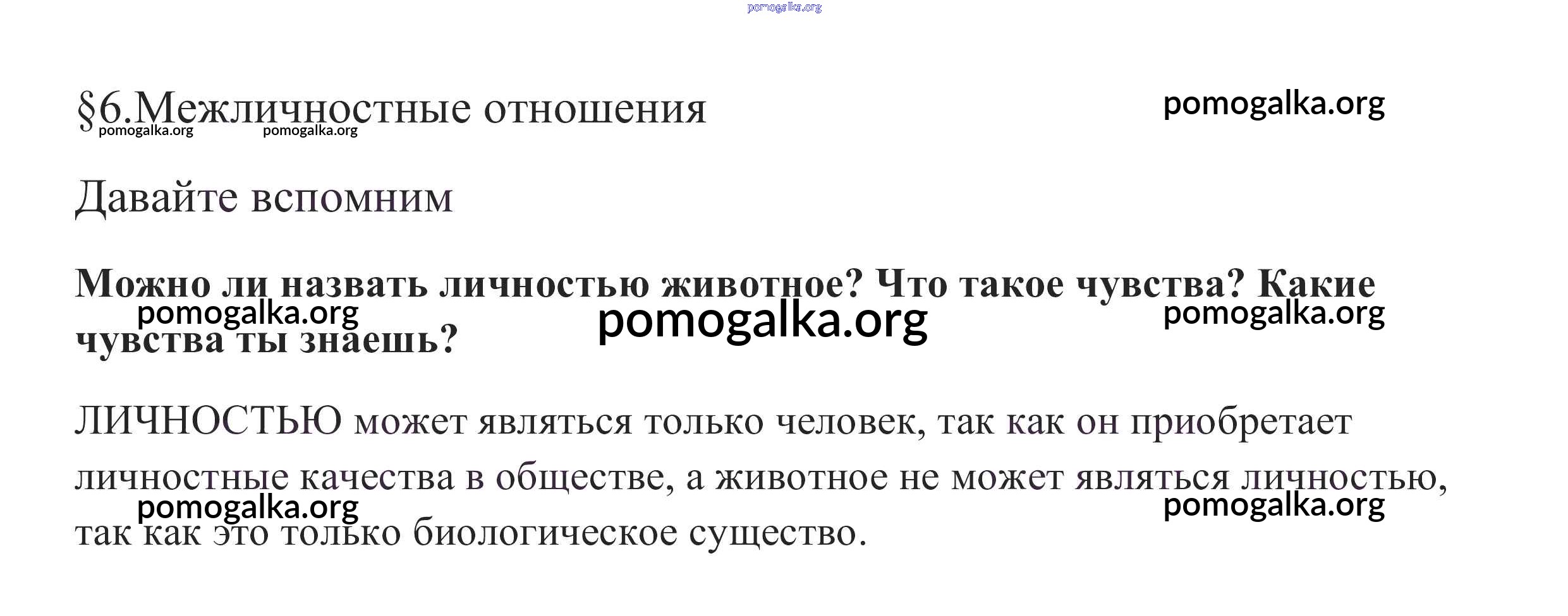 Готовые ответы - Обществознание 6 класс Боголюбов Л.Н. - вспомним §6 1