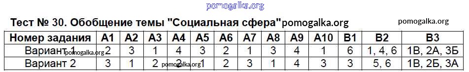 Готовые ответы - Обществознание 8 класс контрольно-измерительные материалы Поздеев А.В. - тест 30