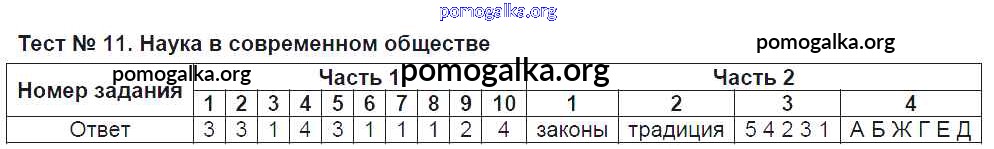 Готовые ответы - Обществознание 8 класс тесты Краюшкина С.В. (к уч. Боголюбова) - тест 11