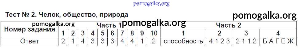 Готовые ответы - Обществознание 8 класс тесты Краюшкина С.В. (к уч. Боголюбова) - тест 2