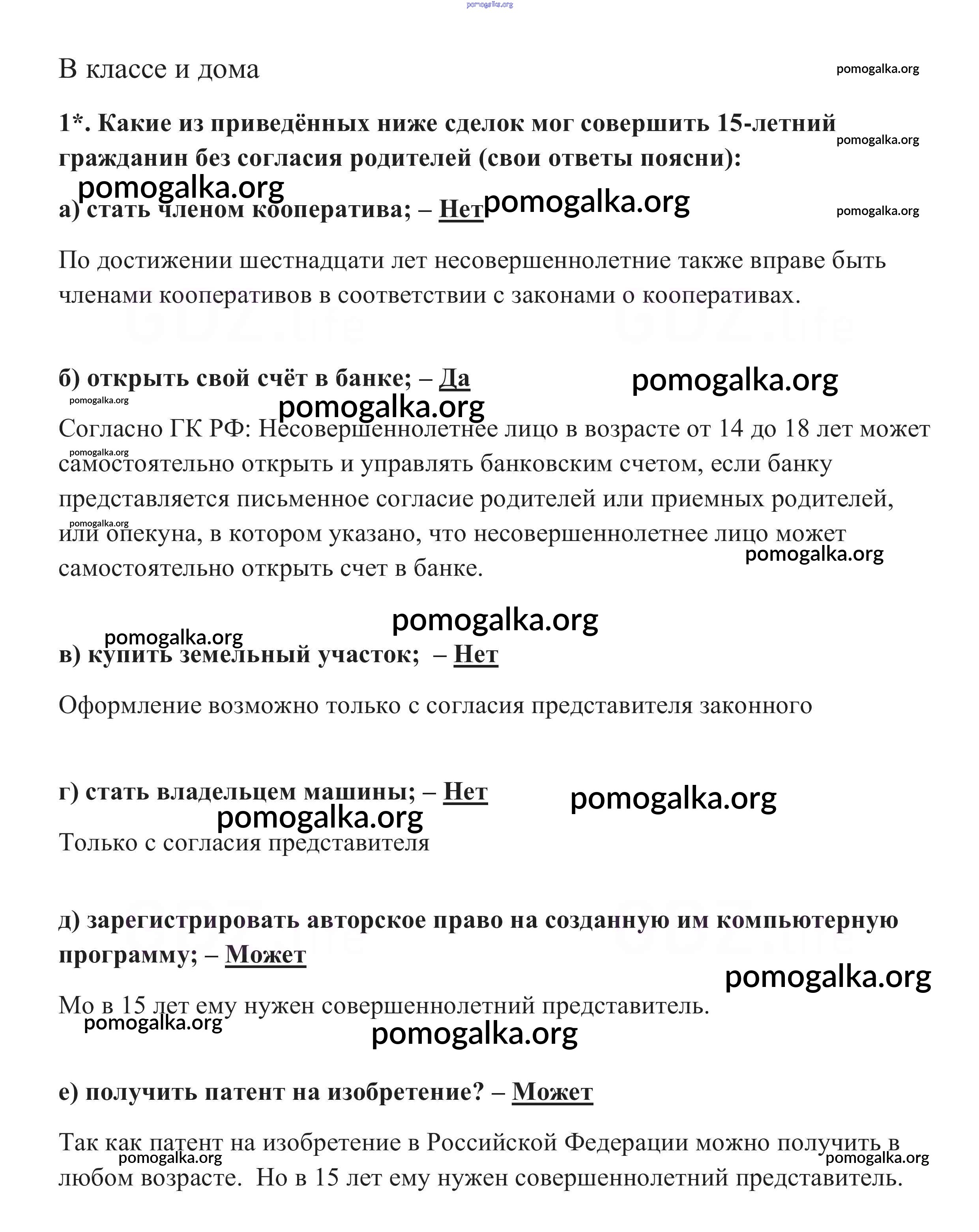 Готовые ответы - Обществознание 9 класс Боголюбов Л.Н. - В классе и дома § 16 1