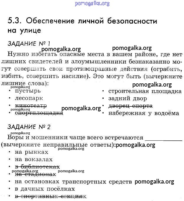 Готовые ответы - ОБЖ 5 класс рабочая тетрадь Смирнов А.Т. - глава 5 §3