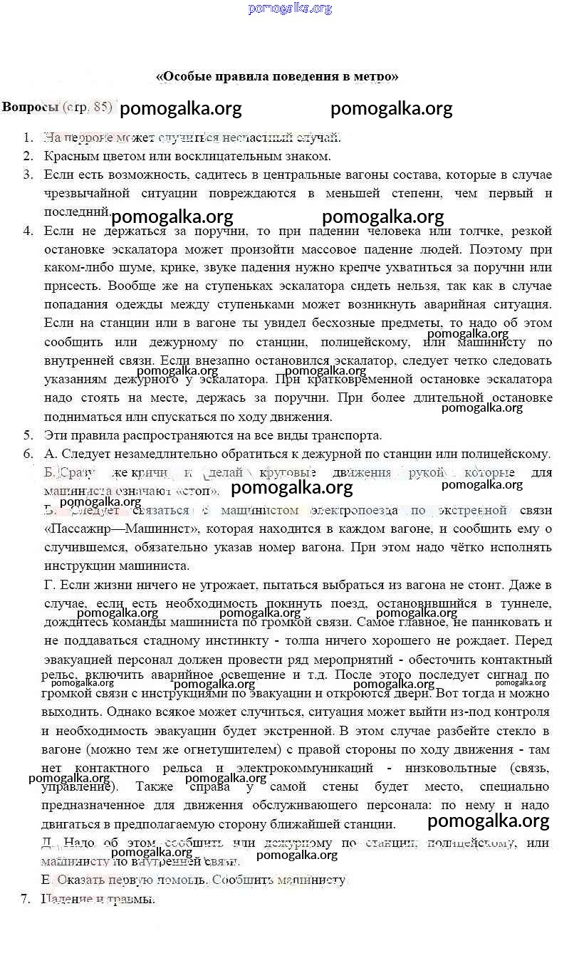 Готовые ответы - ОБЖ 5 класс Фролов М.П. - страница 85