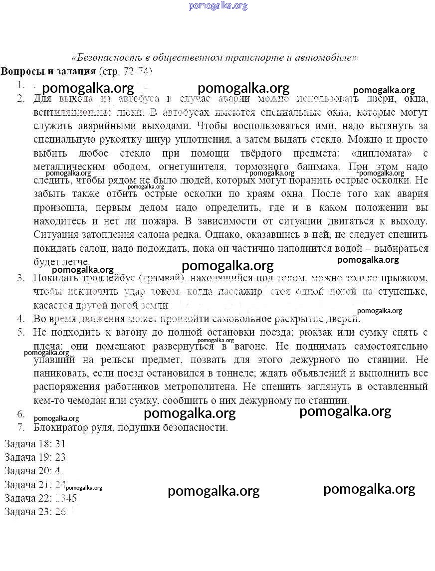 Готовые ответы - ОБЖ 5 класс Поляков В.В. - страница 72-74