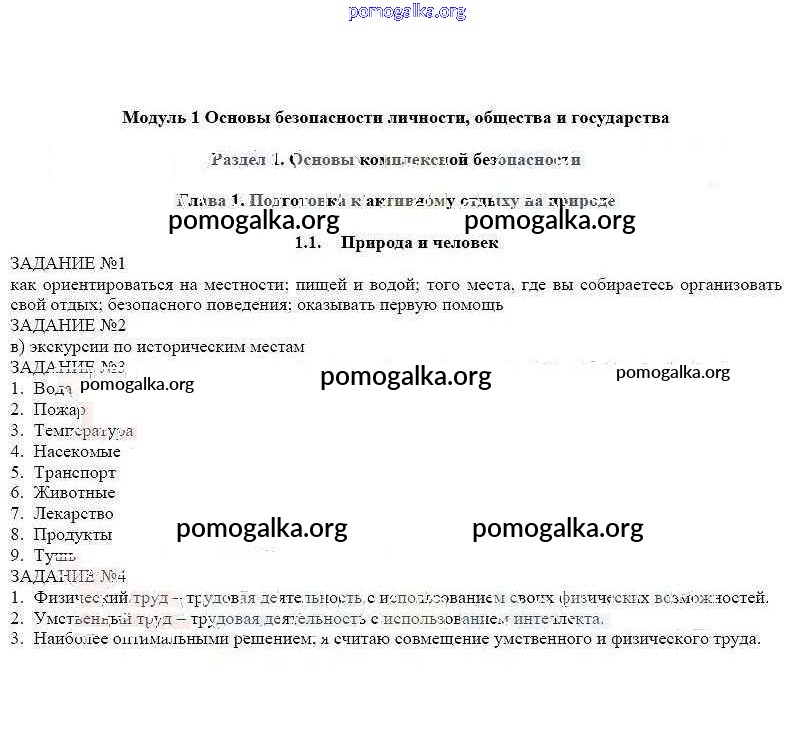 Готовые ответы - ОБЖ 6 класс рабочая тетрадь Смирнов А.Т. - глава 1 1.1