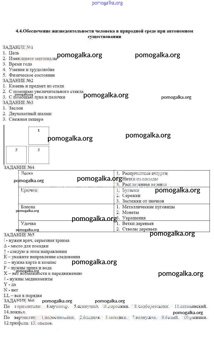 Готовые ответы - ОБЖ 6 класс рабочая тетрадь Смирнов А.Т. - глава 4 4.4