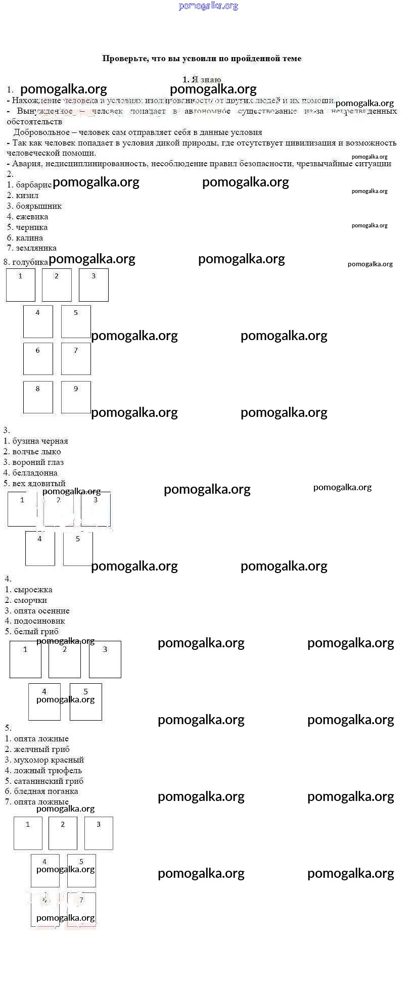 Готовые ответы - ОБЖ 6 класс рабочая тетрадь Смирнов А.Т. - глава 4 Проверьте свои знания