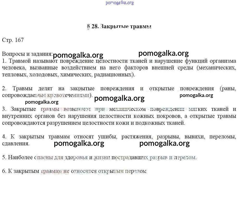 Готовые ответы - ОБЖ 6 класс Маслов А.Г. - страница 167