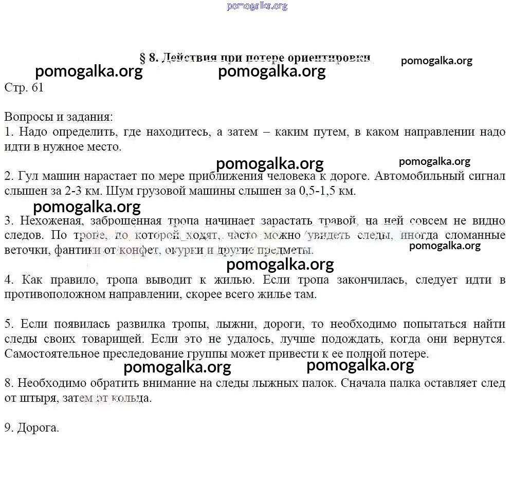 Готовые ответы - ОБЖ 6 класс Маслов А.Г. - страница 61