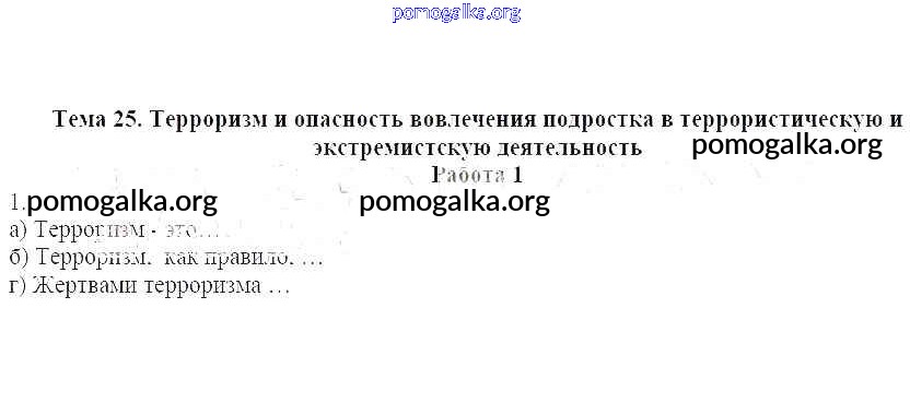 Готовые ответы - ОБЖ 7 класс рабочая тетрадь Демидов О.П. - работа 1 тема 25 1