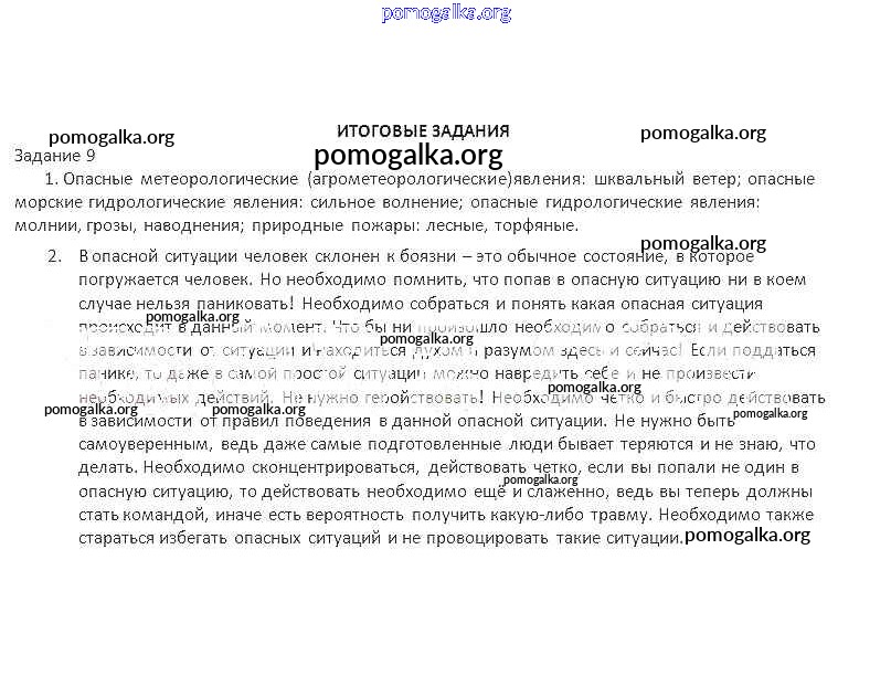 Готовые ответы - ОБЖ 7 класс рабочая тетрадь Подолян Ю.П. - итоговые задания 9