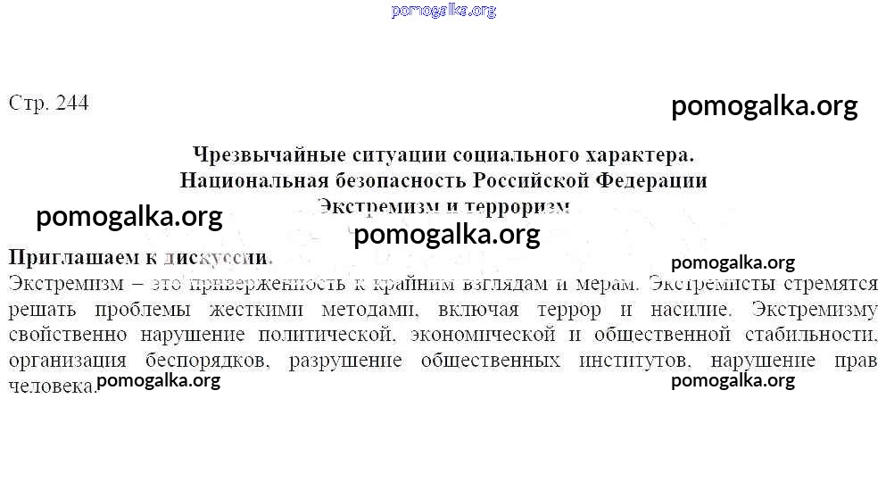 Готовые ответы - ОБЖ 7-9 классы Виноградова Н. Ф. - страница 244