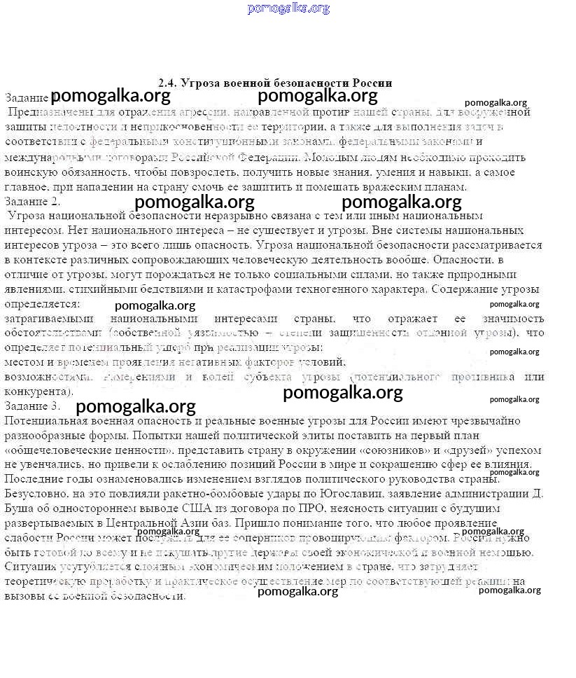 Готовые ответы - ОБЖ 9 класс рабочая тетрадь Смирнов А.Т. - глава 2 2.4