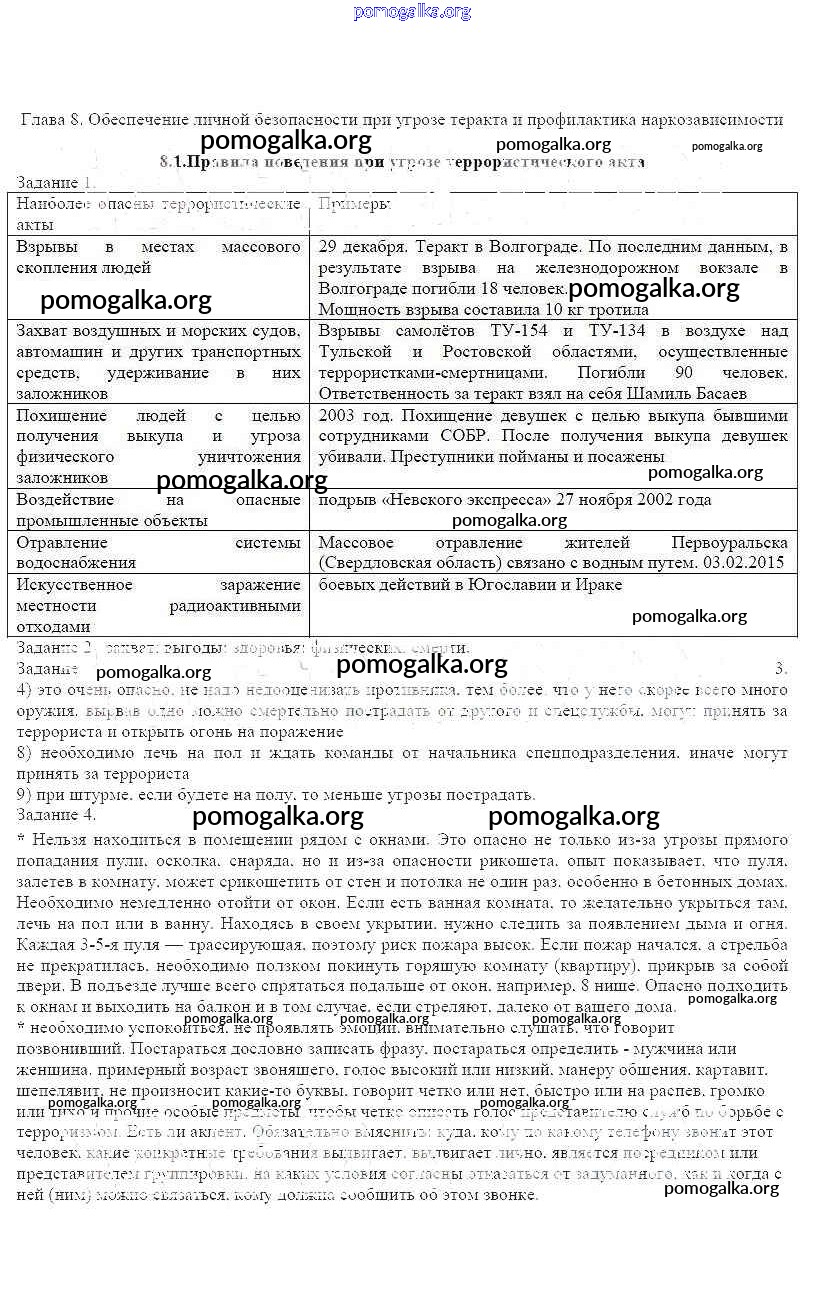 Готовые ответы - ОБЖ 9 класс рабочая тетрадь Смирнов А.Т. - глава 8 8.1