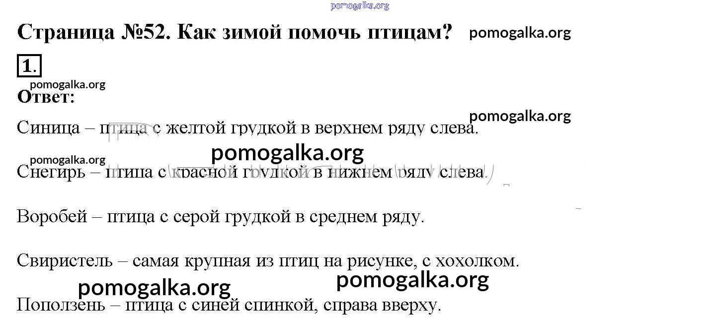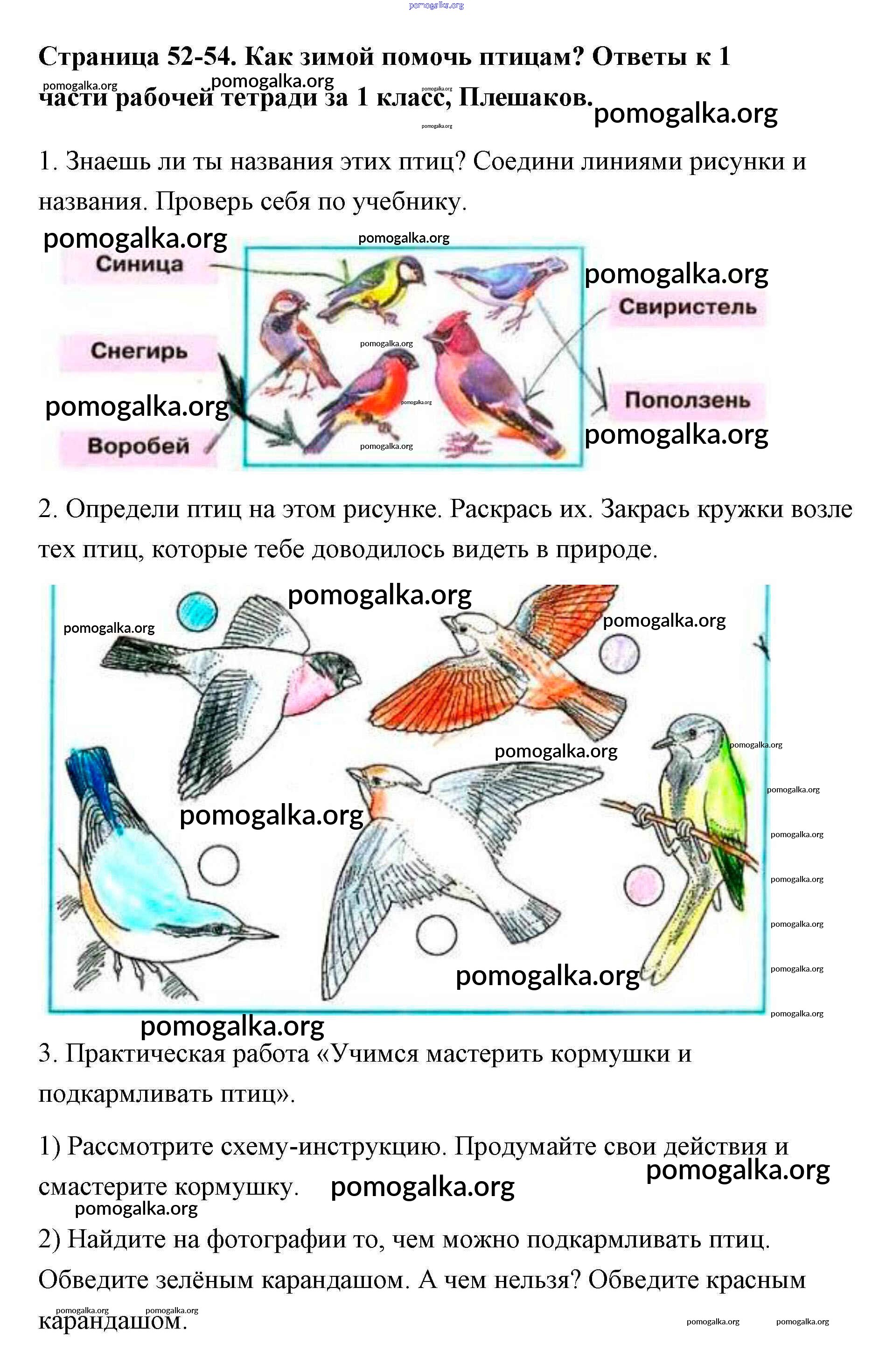 Готовые ответы - Окружающий мир 1 класс рабочая тетрадь Плешаков (в 2-х частях) - часть 1. страница 52-54