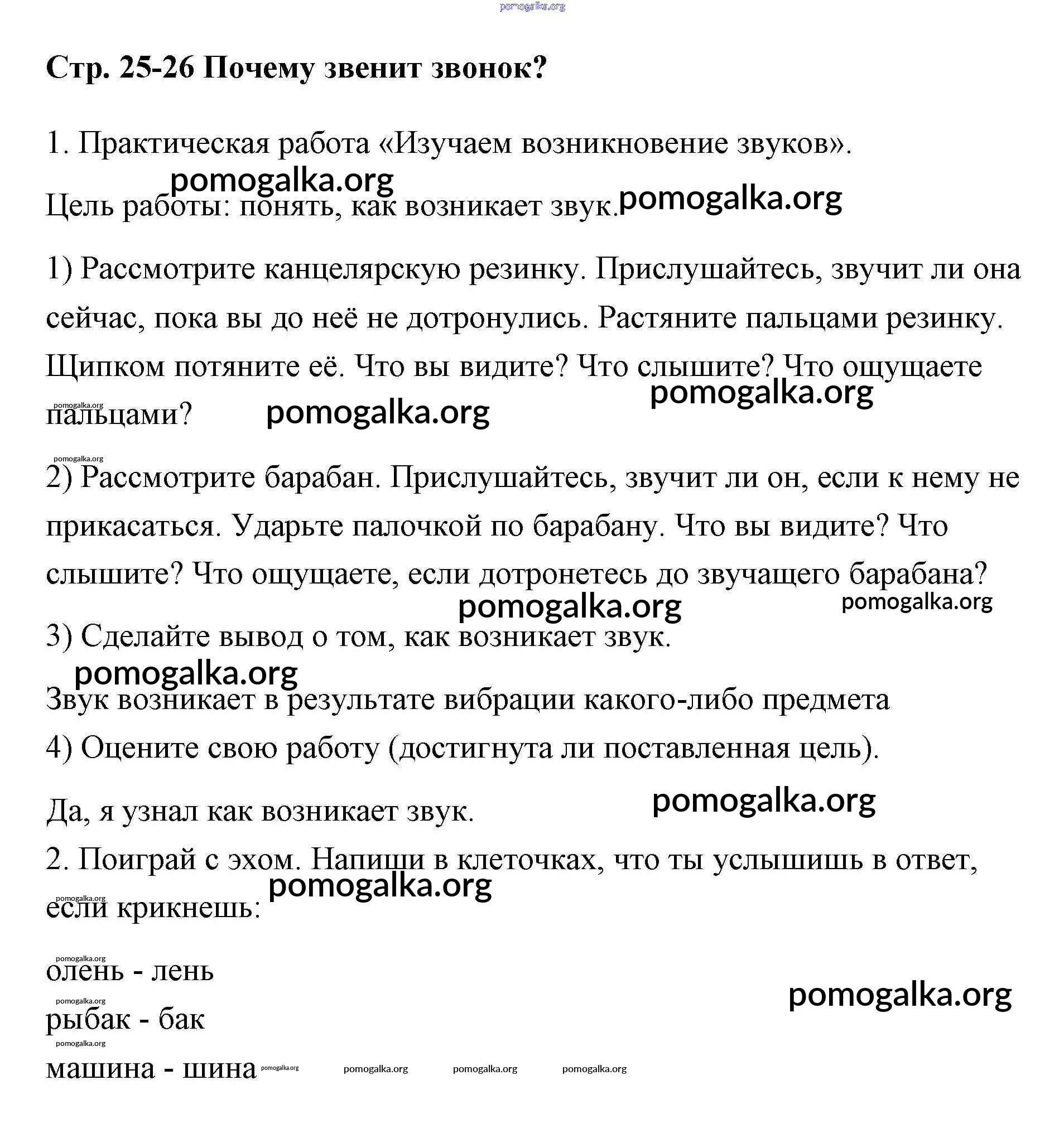 Готовые ответы - Окружающий мир 1 класс рабочая тетрадь Плешаков (в 2-х частях) - часть 2. страница 25-26