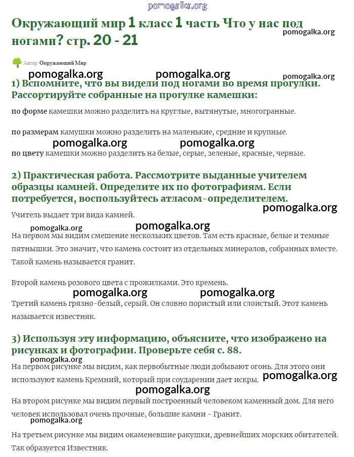 Готовые ответы - Окружающий мир 1 класс Плешаков (Школы России) - часть 1. страница 20-21