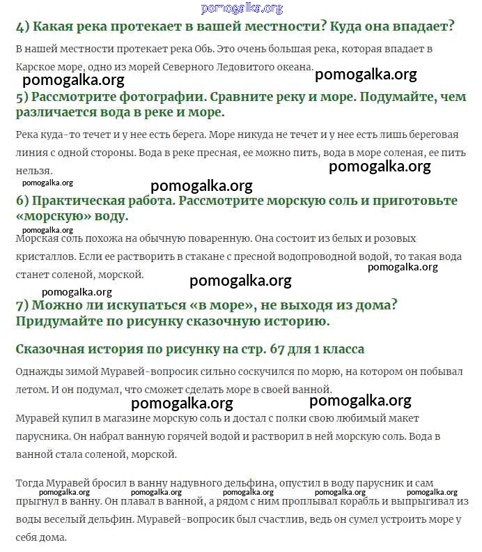Готовые ответы - Окружающий мир 1 класс Плешаков (Школы России) - часть 1. страница 66-67