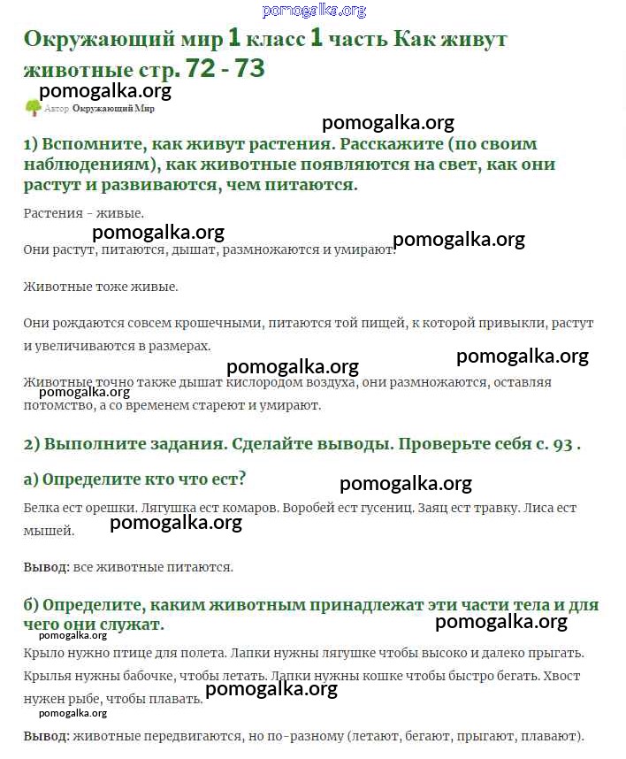 Готовые ответы - Окружающий мир 1 класс Плешаков (Школы России) - часть 1. страница 72-73