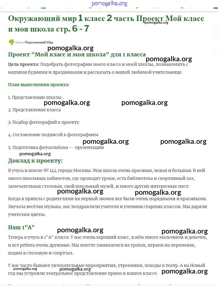 Готовые ответы - Окружающий мир 1 класс Плешаков (Школы России) - часть 2. страница 6 (мой класс и моя школа)