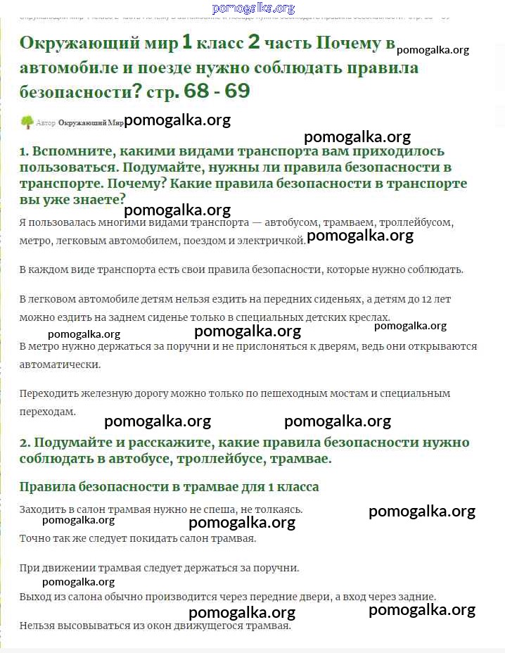 Готовые ответы - Окружающий мир 1 класс Плешаков (Школы России) - часть 2. страница 68-69