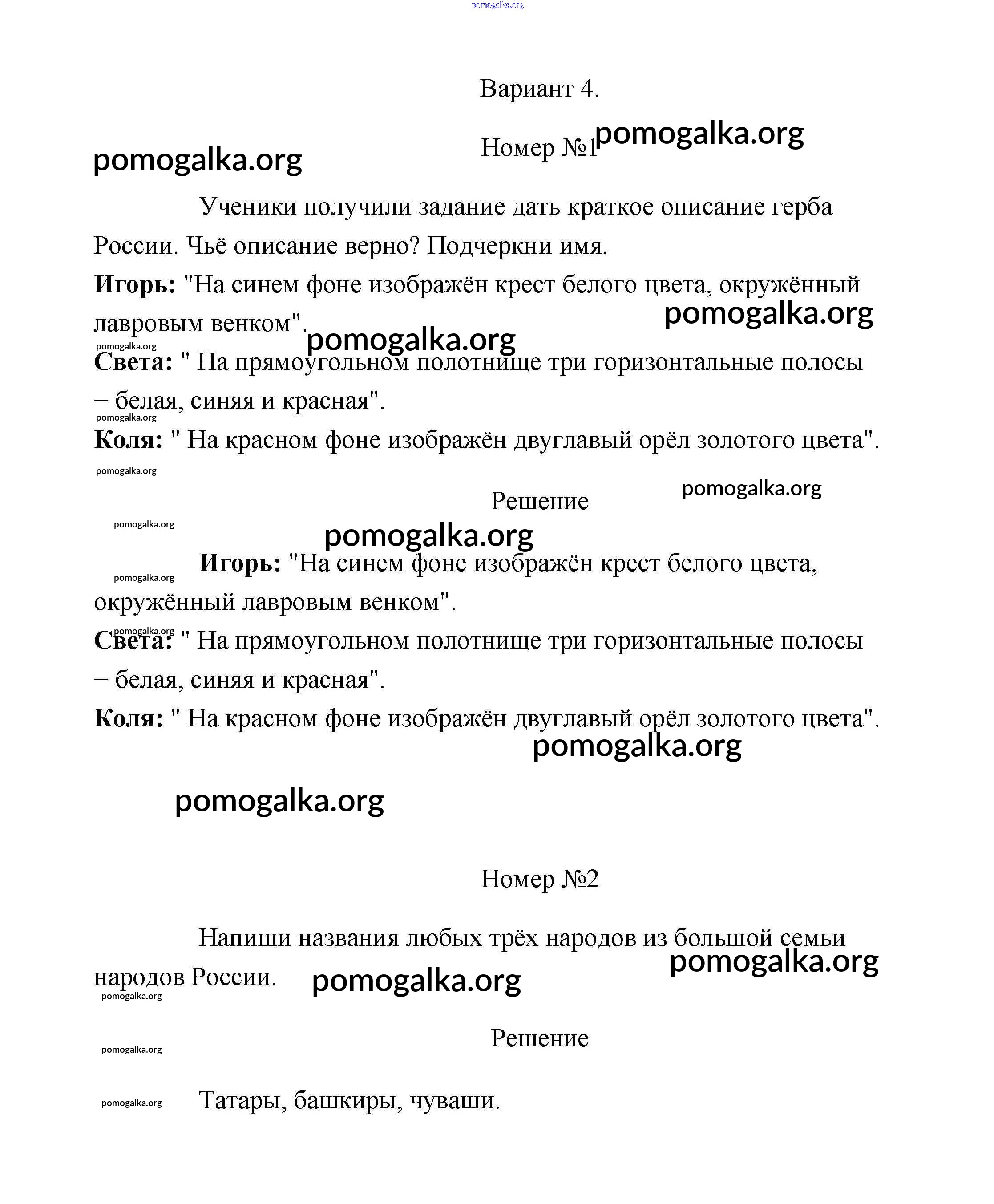 Готовые ответы - Окружающий мир 2 класс проверочные работы Плешаков - проверочная работа 2 (вариант) 4