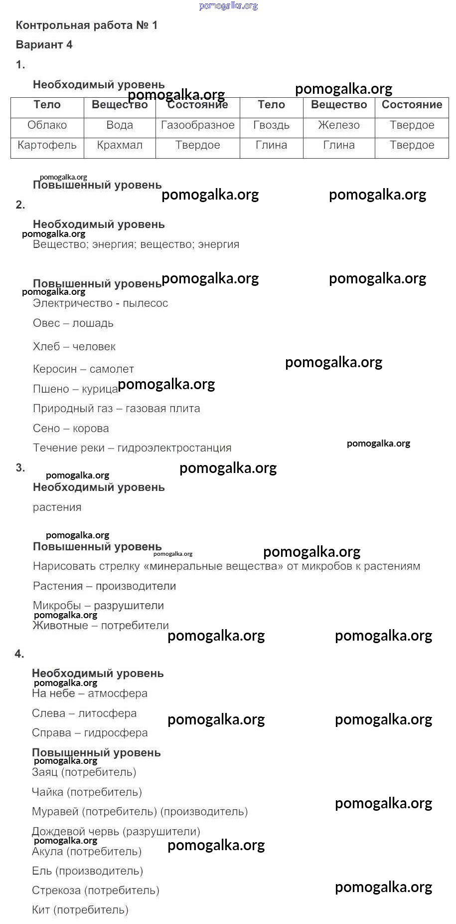 Готовые ответы - Окружающий мир 3 класс проверочные и контрольные работы Вахрушев А.А. - кр №1 4