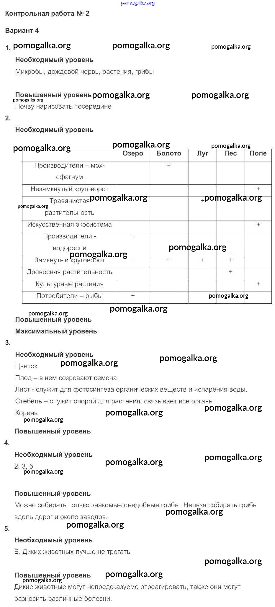 Готовые ответы - Окружающий мир 3 класс проверочные и контрольные работы Вахрушев А.А. - кр №2 4