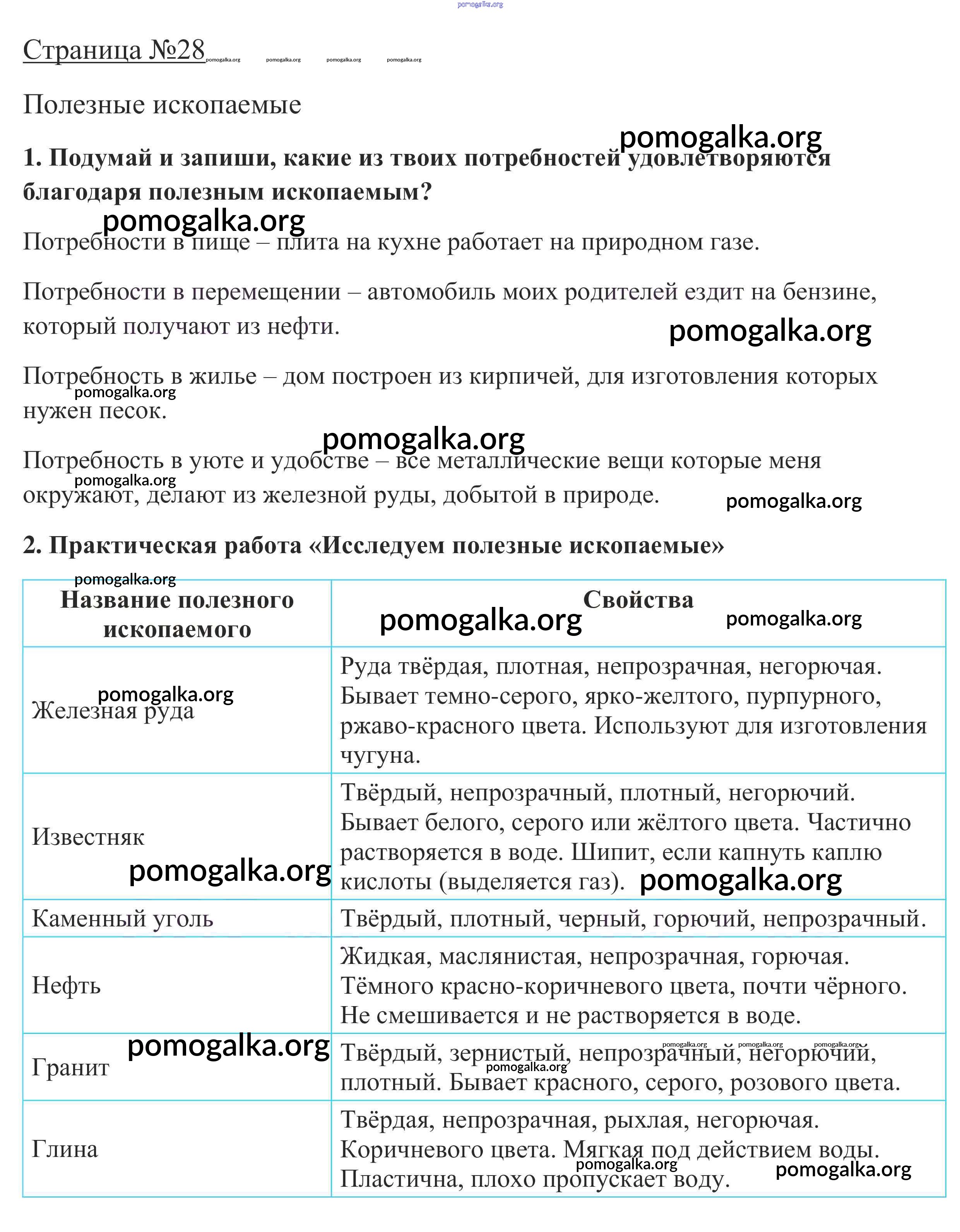 Готовые ответы - Окружающий мир 3 класс рабочая тетрадь Школа России Плешаков А.А. - часть 2 28