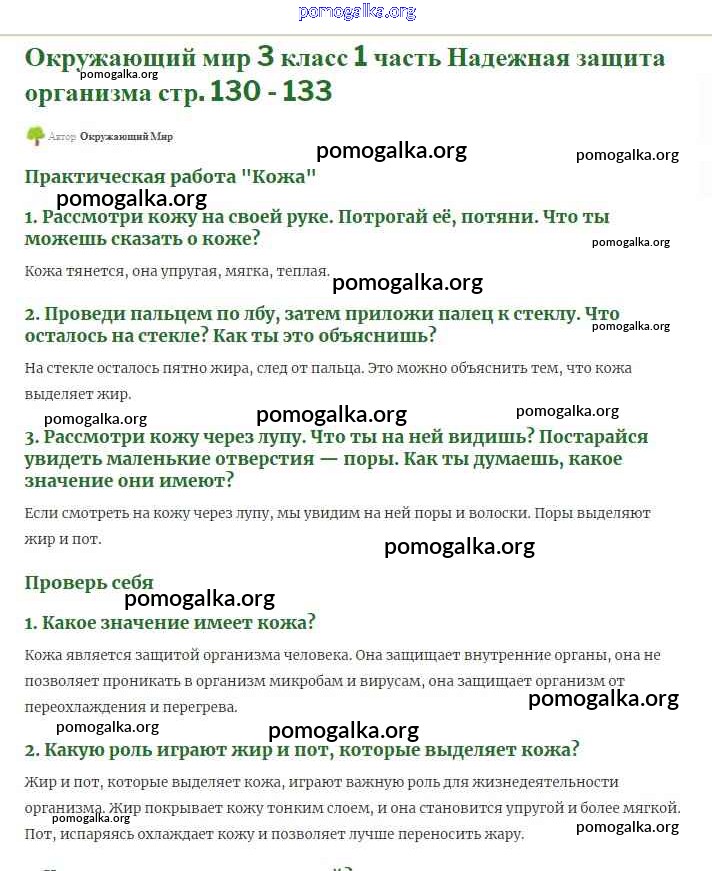 Готовые ответы - Окружающий мир 3 класс Плешаков (Школы России) - мы и наше здоровье часть 1 130