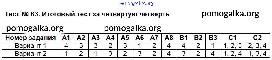 Готовые ответы - Окружающий мир 4 класс КИМ Яценко И.Ф. - тест 63