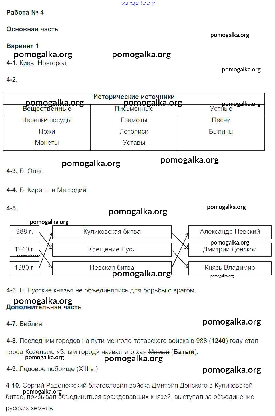 Готовые ответы - Окружающий мир 4 класс проверочные и диагностические работы Потапов И.В. (к уч. Ивченковой Г.Г.) - работа 4. вариант 1