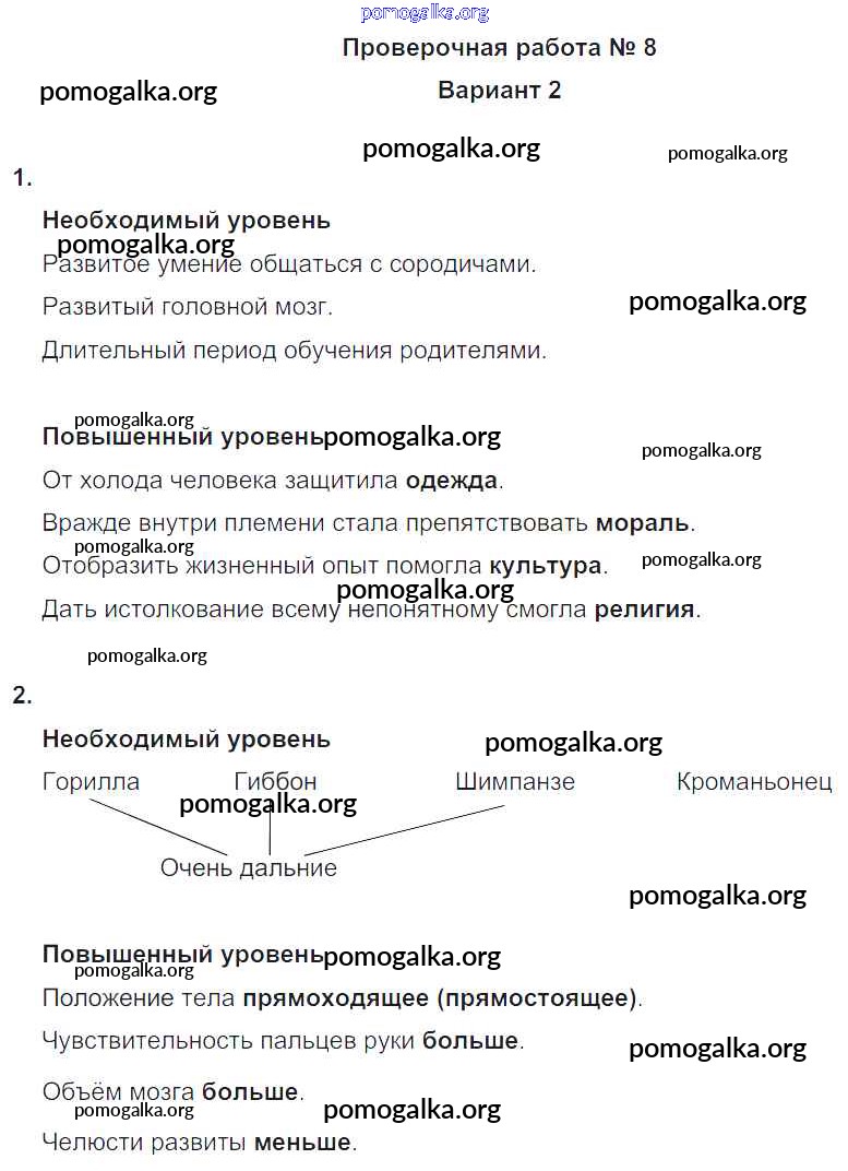 Готовые ответы - Окружающий мир 4 класс проверочные и контрольные работы Вахрушев А.А. - пр-8. вариант проверочная работа 2