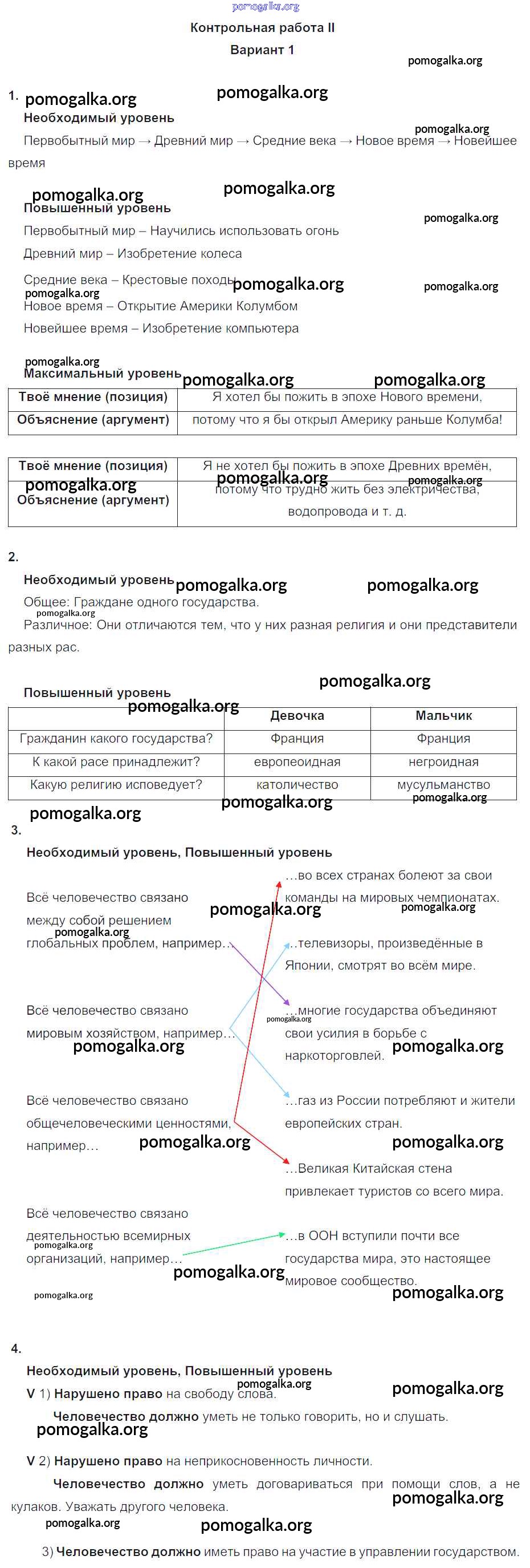 Готовые ответы - Окружающий мир 4 класс проверочные и контрольные работы Вахрушев А.А. - кр-2. вариант контрольная работа 1