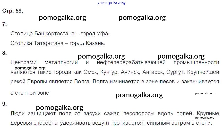 Готовые ответы - Окружающий мир 4 класс тетрадь для самостоятельной работы Школьная олимпиада Чуракова Р.Г. - страница 59