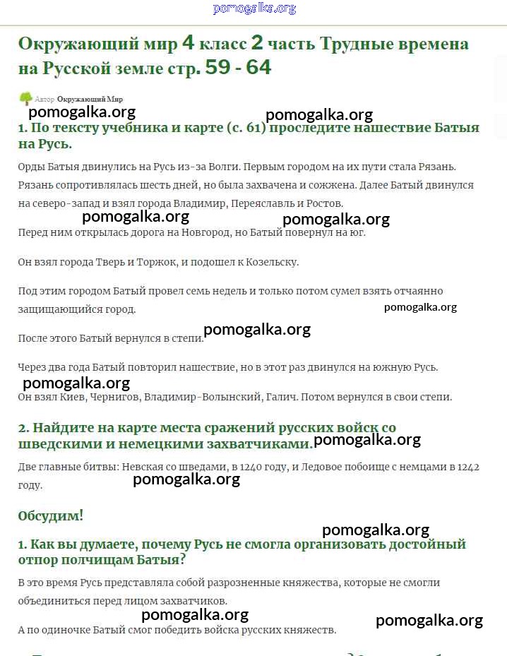 Готовые ответы - Окружающий мир 4 класс Плешаков (Школы России) - страницы истории России часть 2 59