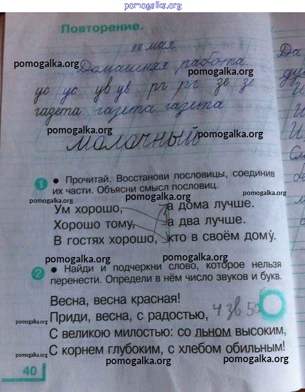 Готовые ответы - Русский язык 1 класс рабочая тетрадь Андрианова Т.М. - часть 2. страница 40