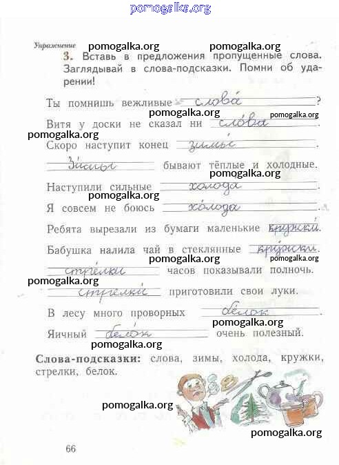 Готовые ответы - Русский язык 1 класс рабочая тетрадь Иванов С.В. - тетрадь №1. страница 66