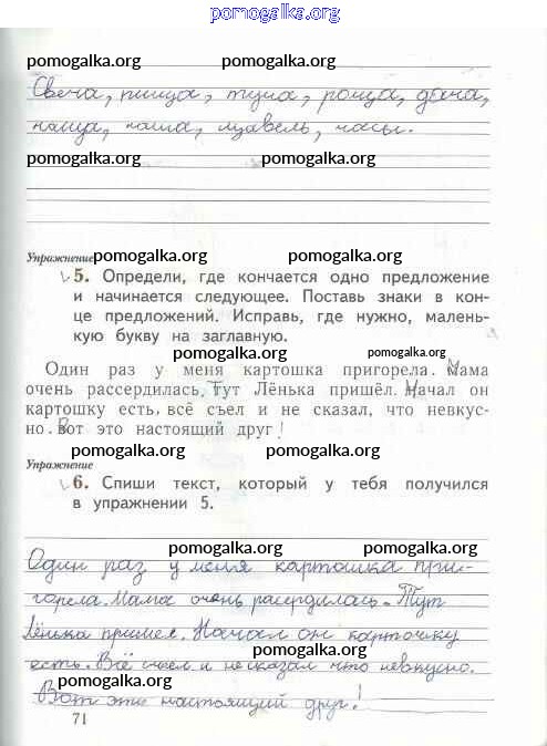 Готовые ответы - Русский язык 1 класс рабочая тетрадь Иванов С.В. - тетрадь №1. страница 71
