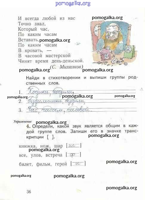 Готовые ответы - Русский язык 1 класс рабочая тетрадь Иванов С.В. - тетрадь №2. страница 36