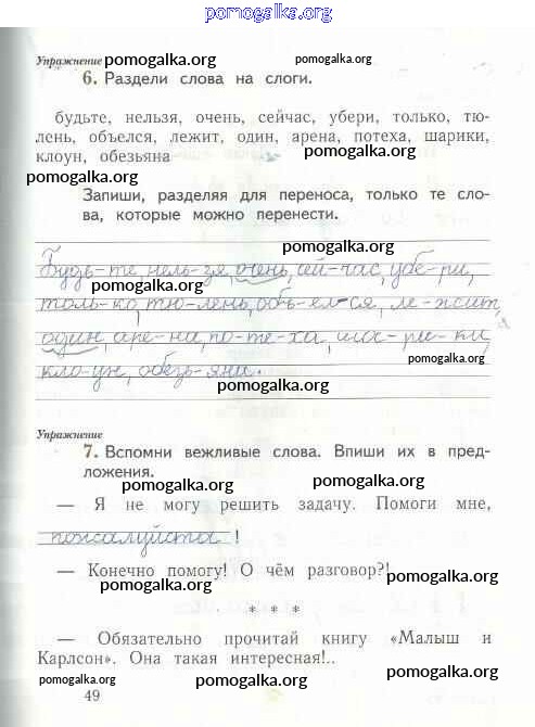 Готовые ответы - Русский язык 1 класс рабочая тетрадь Иванов С.В. - тетрадь №2. страница 49