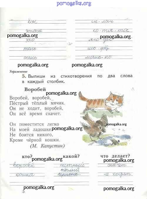 Готовые ответы - Русский язык 1 класс рабочая тетрадь Иванов С.В. - тетрадь №2. страница 5